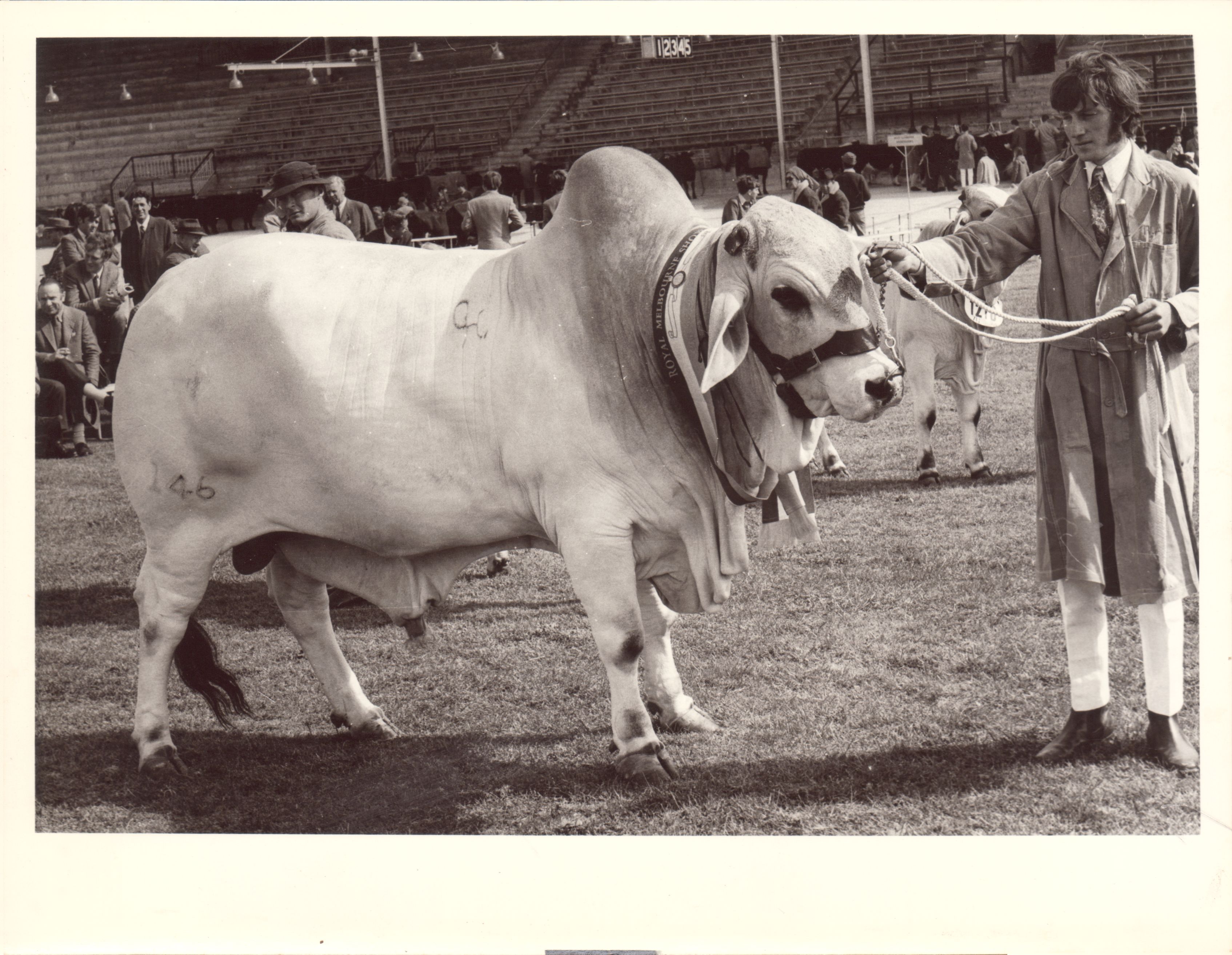 This item is a part of a larger collection of 4,500 Frank Johnson photographs and negatives donated to Melbourne Royal by Frank Johnson’s daughter, Francis Beatty Wallace in 2016. This collection spanning from the 1930s to the 1980s holds important social and historical significance in preserving and sharing Victoria’s agricultural history and community. The photographs capture the local, regional, and state’s shared relationships developed through agriculture and the importance of farming and husbandry to the population and development of Australia.