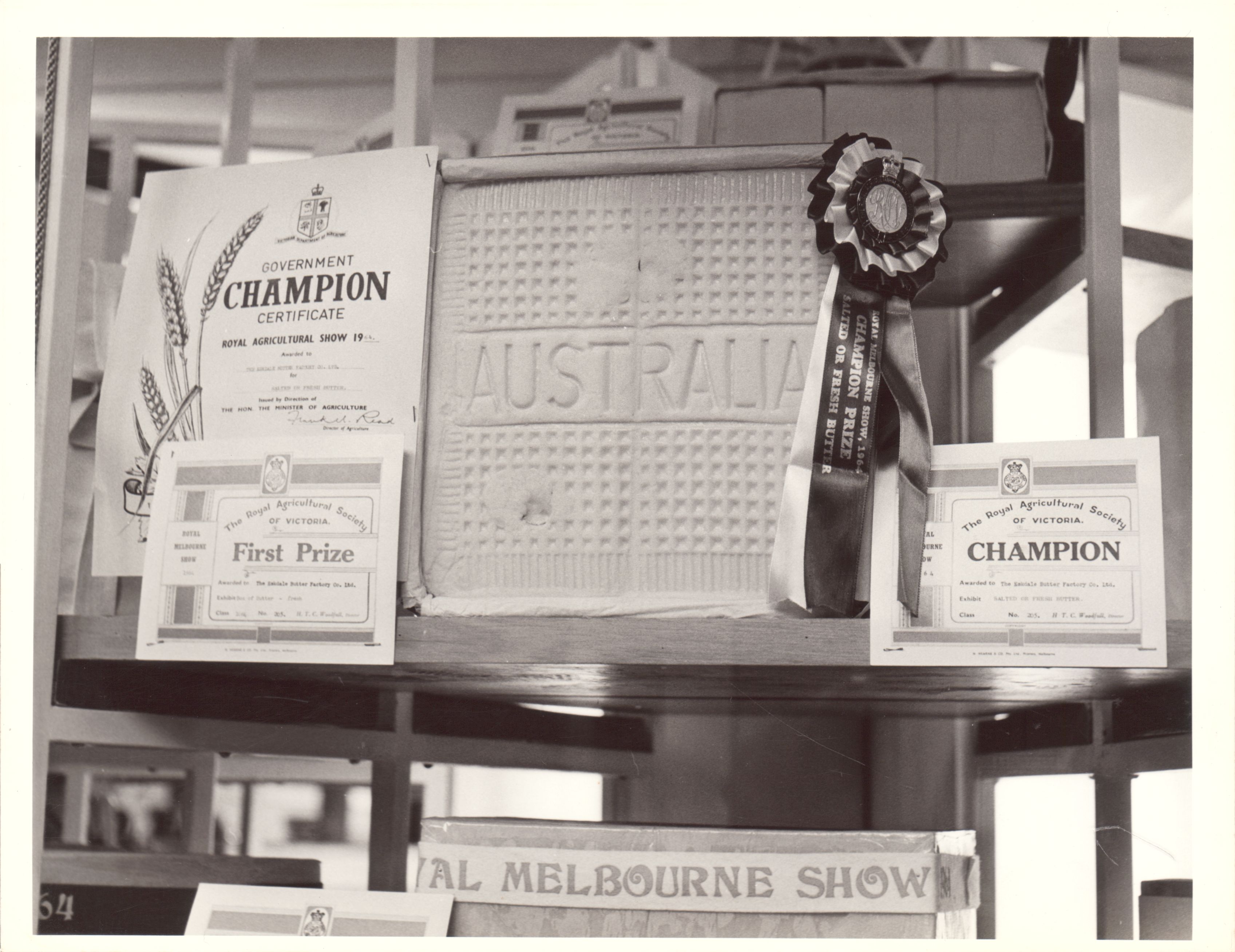 Frank was instrumental in capturing decades of events at the Royal Melbourne Show (RMS) including the Grand Parade, judging, and awards ceremonies. In recognition for his achievements in documenting Australian agricultural pursuits, Frank was given an award from the Rural Press, and invited to present an award for the champion Corriedale at the RMS.