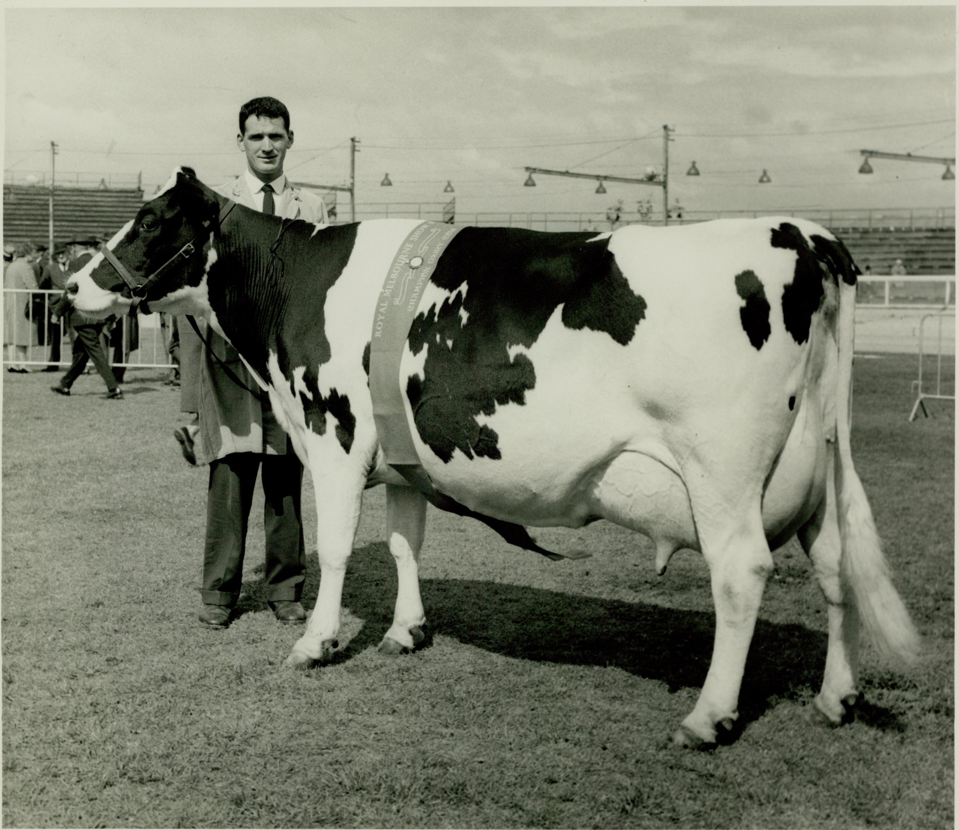 This item is a part of a larger collection of 4,500 Frank Johnson photographs and negatives donated to Melbourne Royal by Frank Johnson’s daughter, Francis Beatty Wallace in 2016. This collection spanning from the 1930s to the 1980s holds important social and historical significance in preserving and sharing Victoria’s agricultural history and community. The photographs capture the local, regional, and state’s shared relationships developed through agriculture and the importance of farming and husbandry to the population and development of Australia.