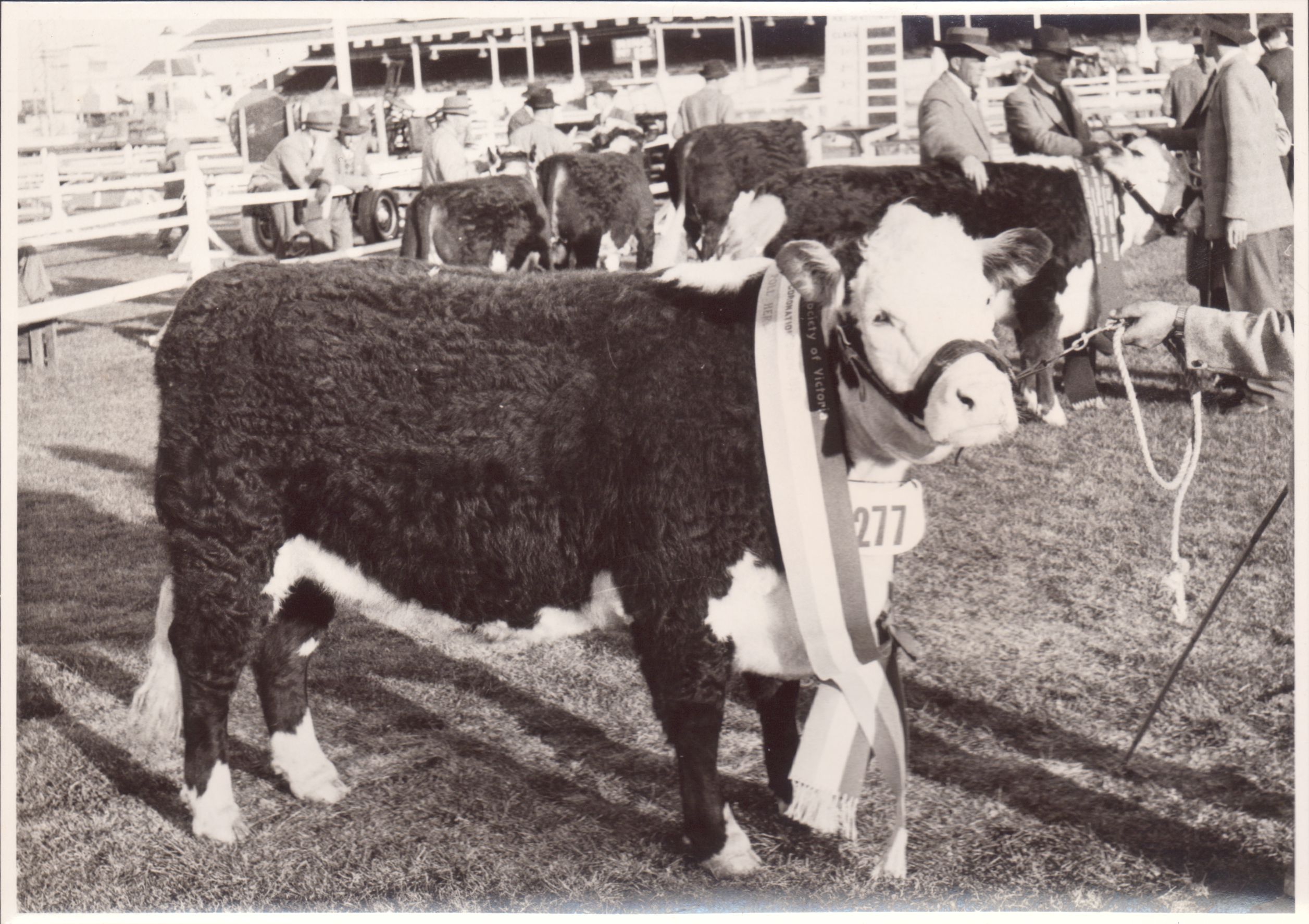 This item is a part of a larger collection of 4,500 Frank Johnson photographs and negatives donated to Melbourne Royal by Frank Johnson’s daughter, Francis Beatty Wallace in 2016. This collection spanning from the 1930s to the 1980s holds important social and historical significance in preserving and sharing Victoria’s agricultural history and community. The photographs capture the local, regional, and state’s shared relationships developed through agriculture and the importance of farming and husbandry to the population and development of Australia.