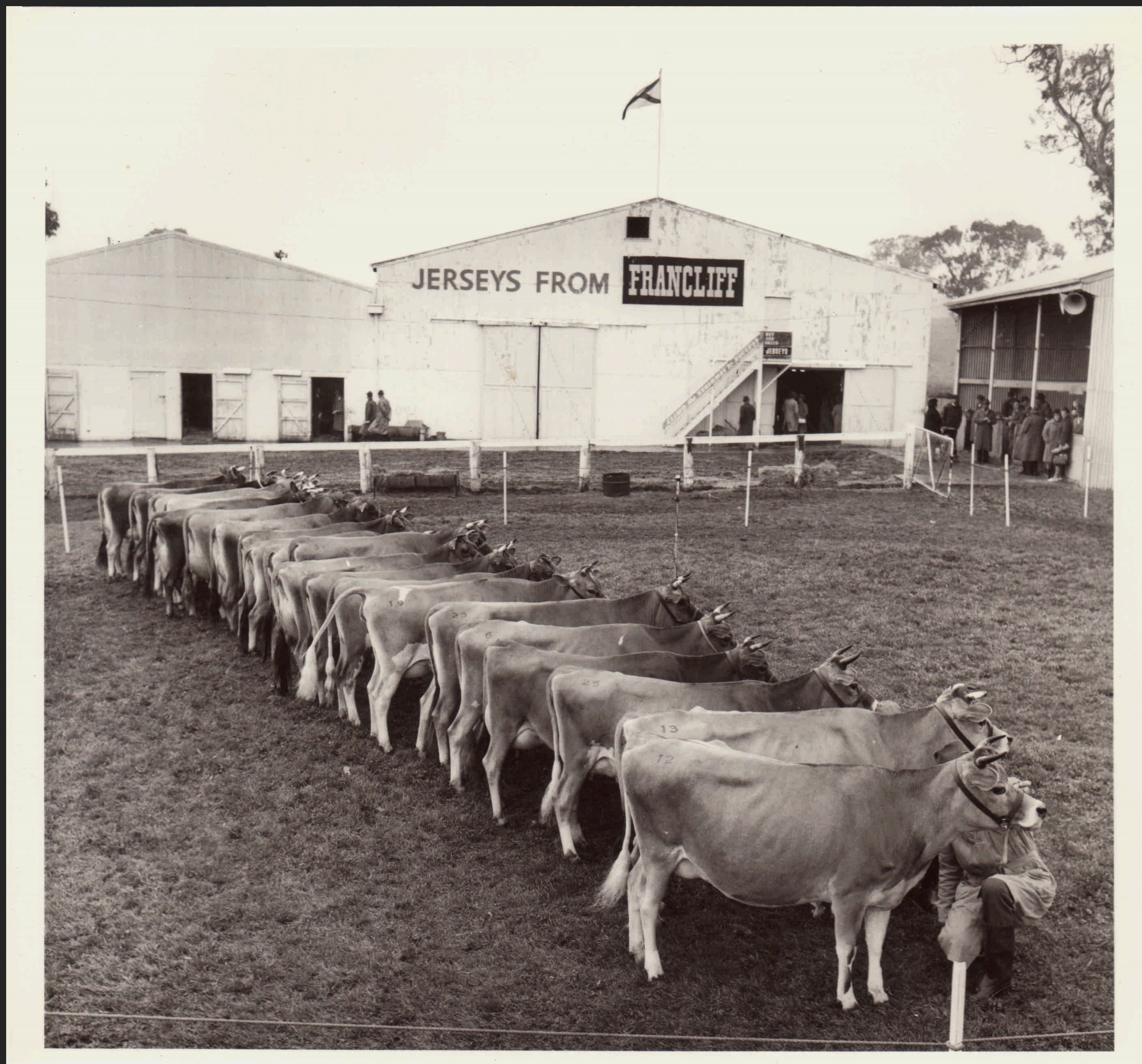 This item is a part of a larger collection of 4,500 Frank Johnson photographs and negatives donated to Melbourne Royal by Frank Johnson’s daughter, Francis Beatty Wallace in 2016. This collection spanning from the 1930s to the 1980s holds important social and historical significance in preserving and sharing Victoria’s agricultural history and community. The photographs capture the local, regional, and state’s shared relationships developed through agriculture and the importance of farming and husbandry to the population and development of Australia.