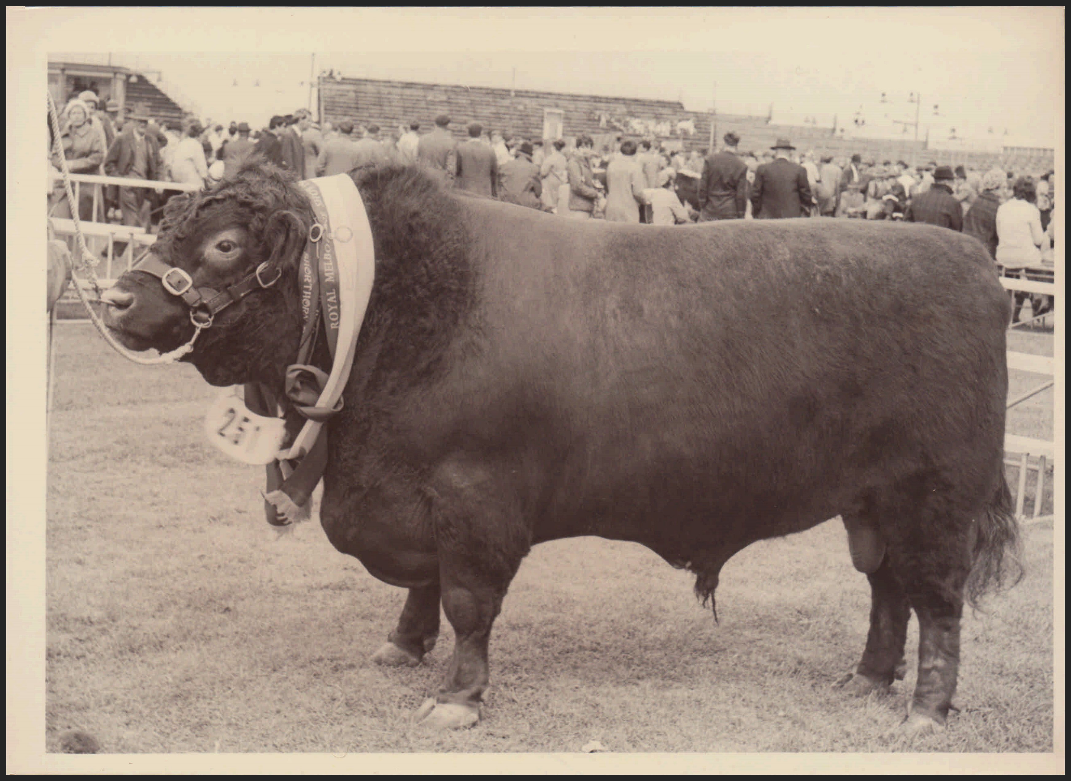 This item is a part of a larger collection of 4,500 Frank Johnson photographs and negatives donated to Melbourne Royal by Frank Johnson’s daughter, Francis Beatty Wallace in 2016. This collection spanning from the 1930s to the 1980s holds important social and historical significance in preserving and sharing Victoria’s agricultural history and community. The photographs capture the local, regional, and state’s shared relationships developed through agriculture and the importance of farming and husbandry to the population and development of Australia.
